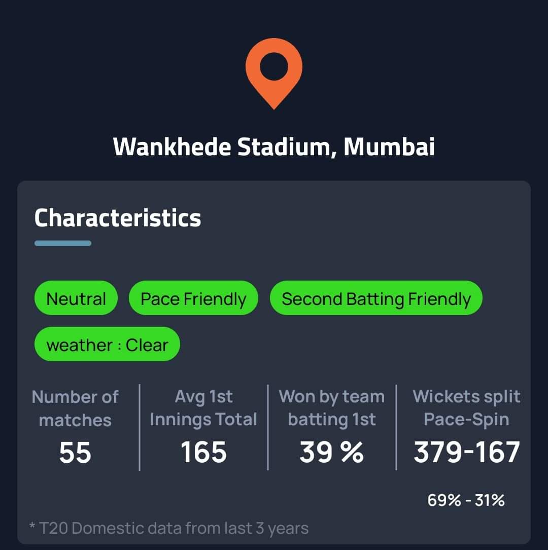 In the last three years, 61 percent of the games at Wankhede have been won by teams batting second. Spinners have had only 31 percent of the wickets. However, both sides have high-class spinners that cannot be ignored.