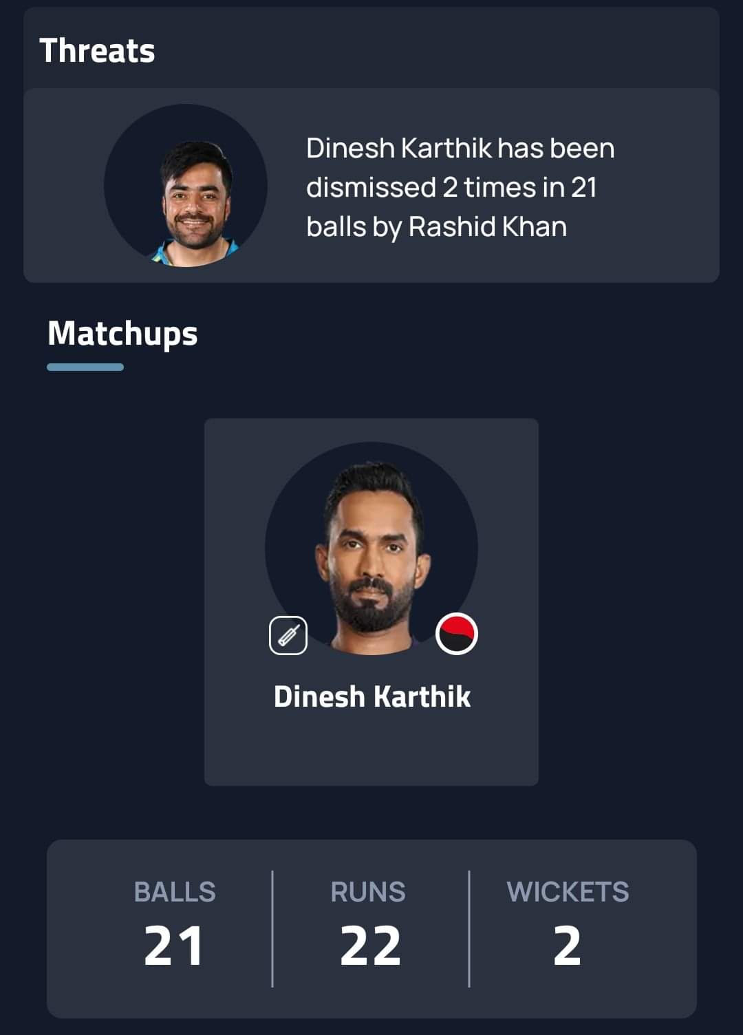 Rashid Khan has dismissed Dinesh Karthik twice without giving much away. Teams have kept a few overs of spin for Karthik and Gujarat may follow the same pattern. It was Rashid who got the better of Karthik in the previous game between the two sides.