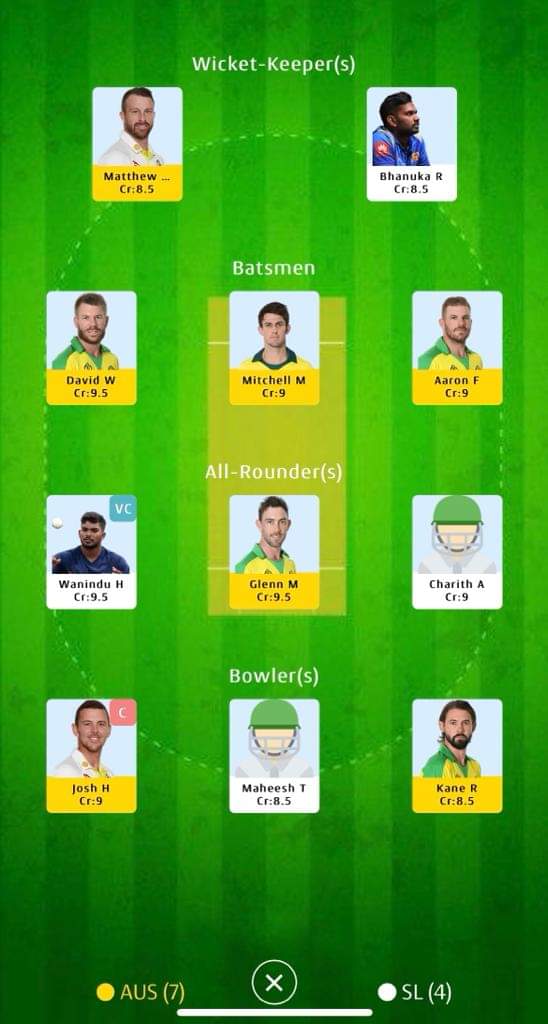 For Small league: Josh Hazlewood (Captain), Wanindu Hasaranga (Vice-captain)