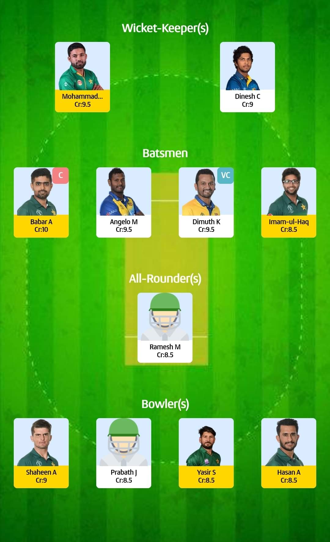 For Grand Leagues: Dinesh Chandimal (Captain) and Yasir Shah (Vice-Captain)