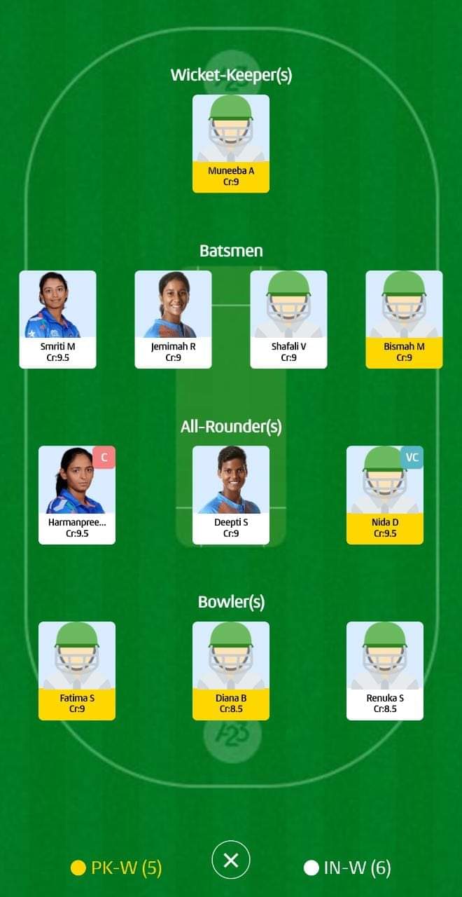 For Small Leagues : Harmanpreet Kaur ©, Nida Dar (VC)