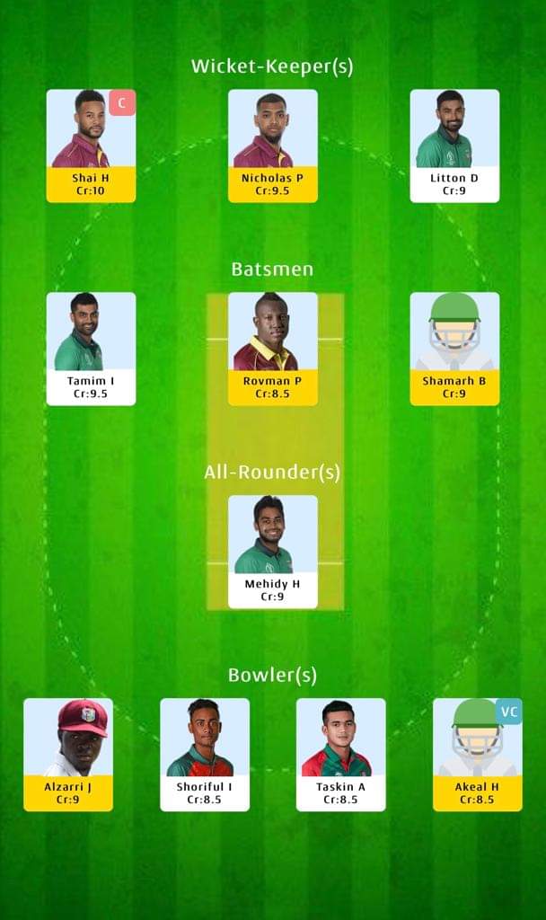 For Grand leagues: Shai Hope (Captain), Akeal Hosein (vice-captain)