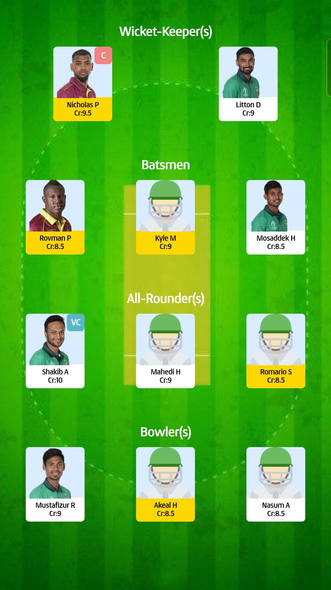 For Grand leagues: Mustafizur Rahman (c), Akeal Hosein (vc)
