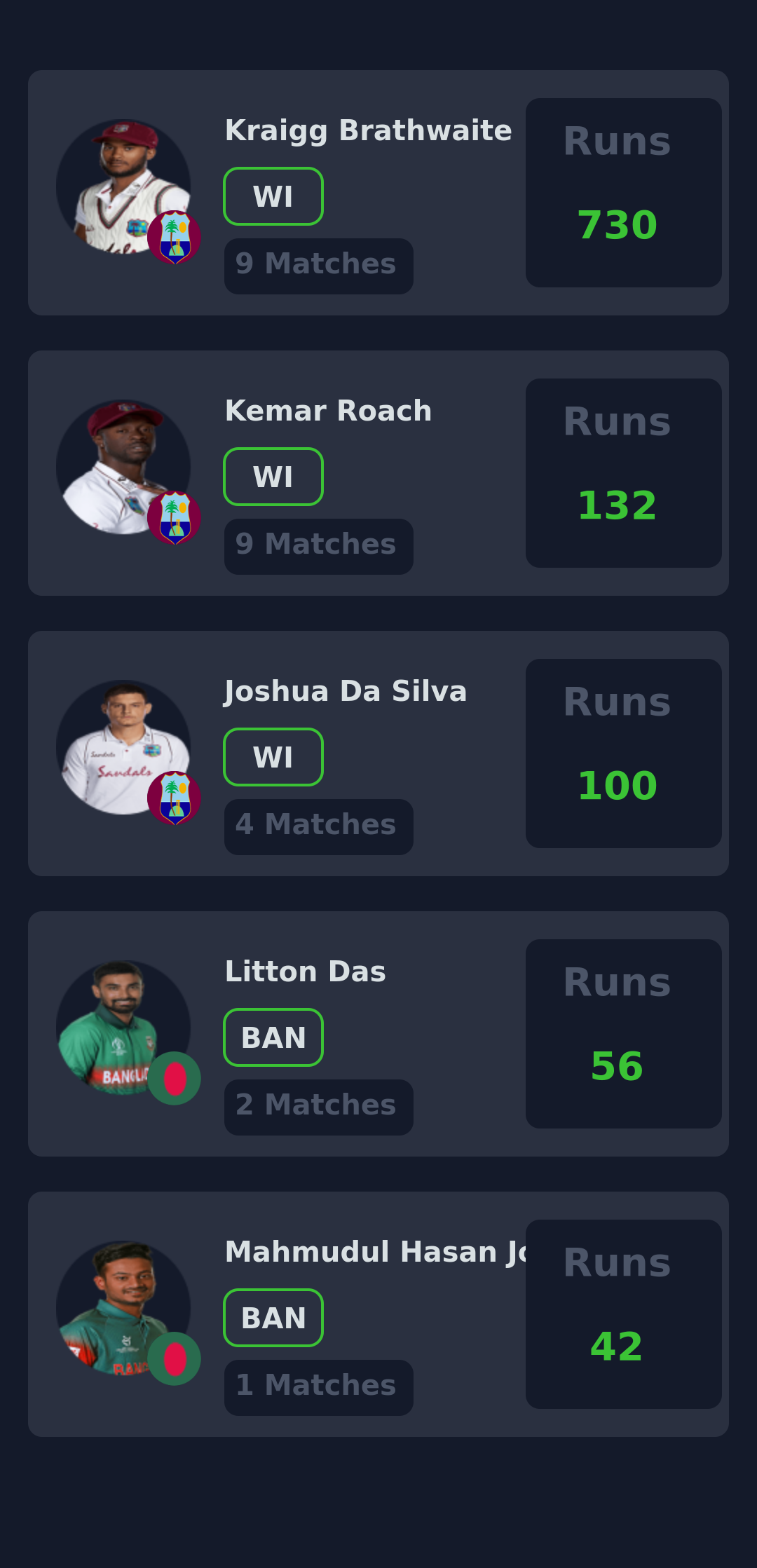 Bangladesh: Mahmudul Hasan Joy, Shadman Islam, Zakir Hasan, Mominul Haque, Mahidul Islam Ankon, Litton Das, Jaker Ali, Mehidy Hasan, Taijul Islam, Nahid Rana, Hasan Mahmud