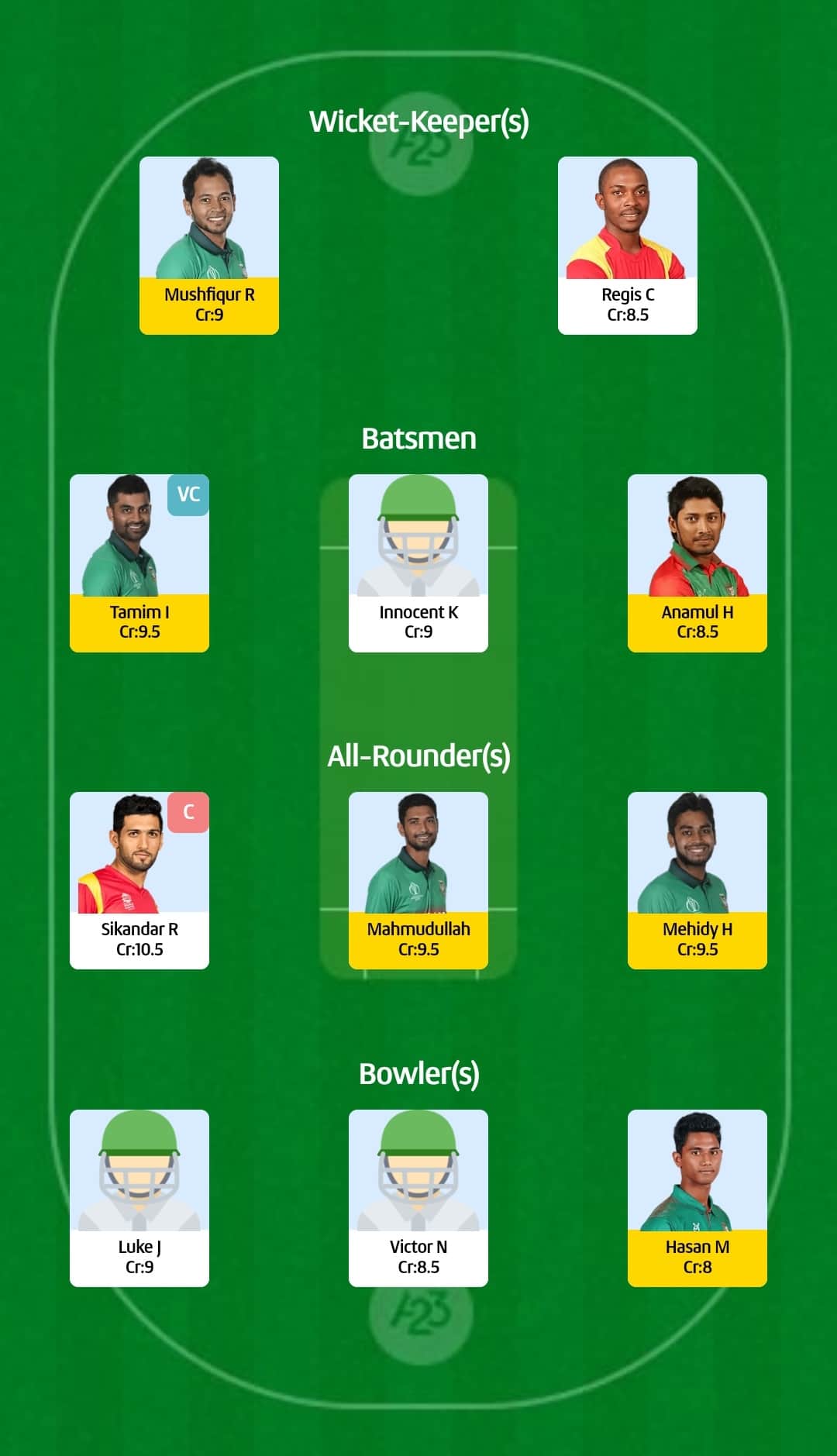 For grand leagues: Regis Chakabva (c), Mehidy Hasan (vc)