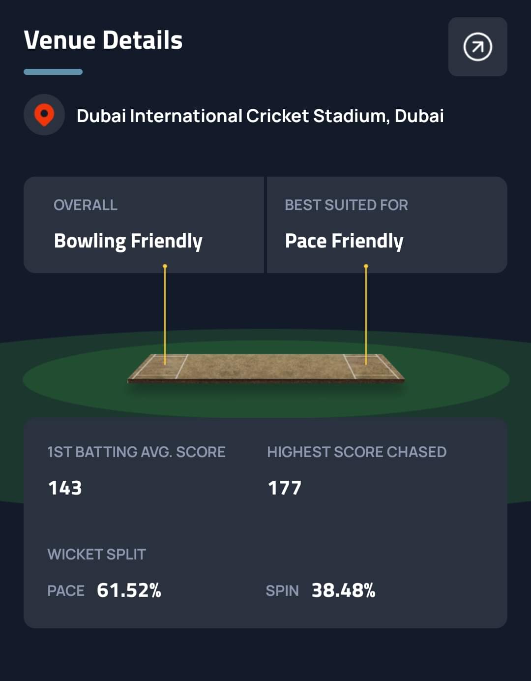Things have more or less been similar in Dubai with over 61% of the wickets falling to fast bowlers in the last three years. The team winning the toss will look to bowl first as they have in the two games in the tournament so far.