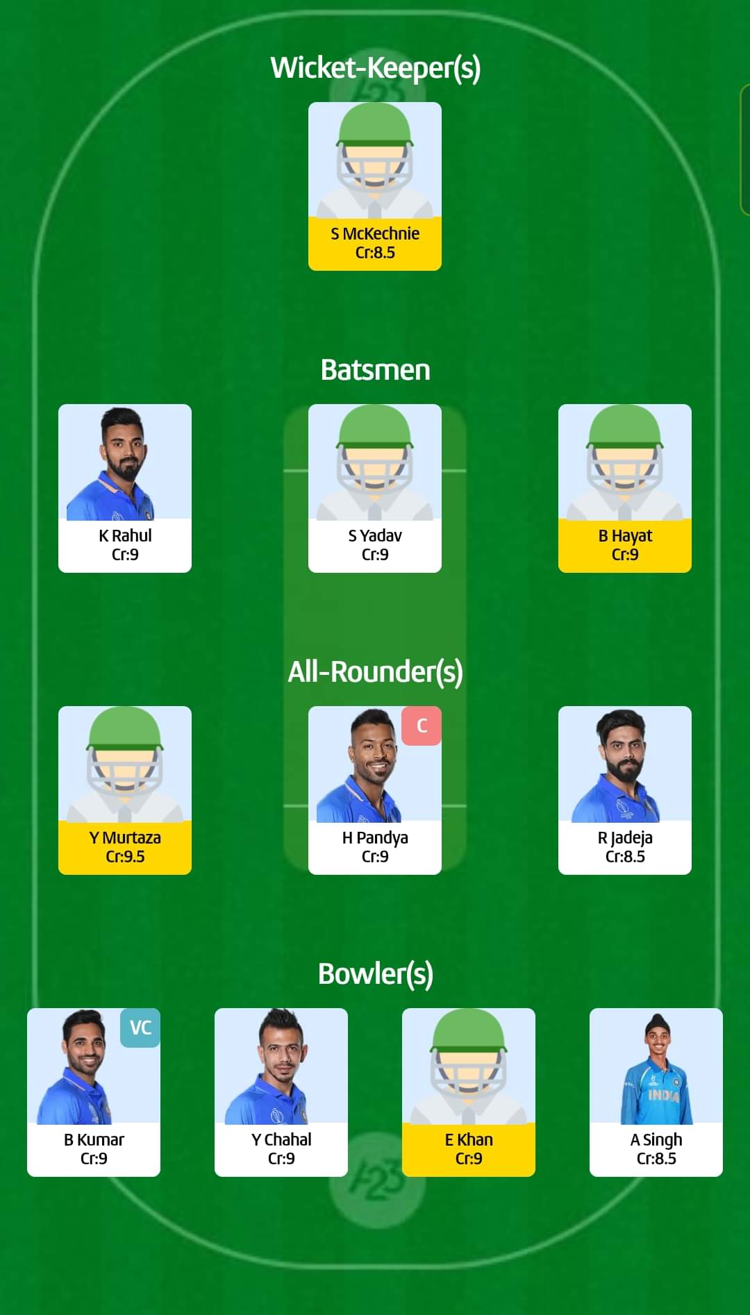 For Small Leagues: Hardik Pandya (c), Bhuvneshwar Kumar (vc)