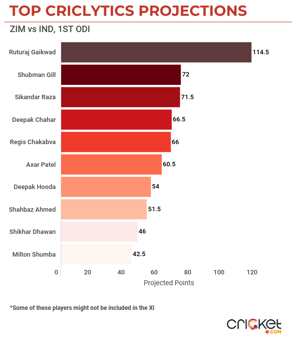 * Rahul, despite returning from a hiatus, is someone that needs to be backed. It is worth remembering that he’s averaged 53.21 in ODIs since 2020. He’s also been dismissed just once against Zimbabwe in ODI cricket.