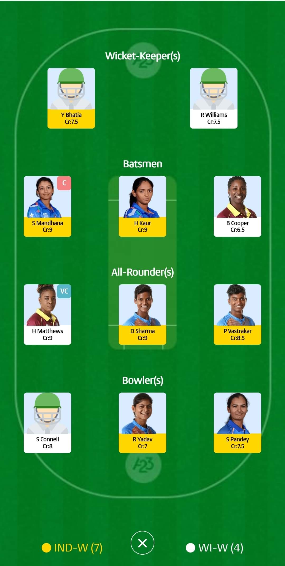 - Deepti Sharma is a vital pick, given her importance in this Indian playing XI. Since 2022, the all-rounder has slammed 403 runs in 20 innings at an average of 36.63 and a strike rate of 136.6. On top of that, the offspinner has also claimed 32 wickets in this time frame at a strike rate of 17.3. She scored 33 off 23 in the first match and also claimed three wickets.