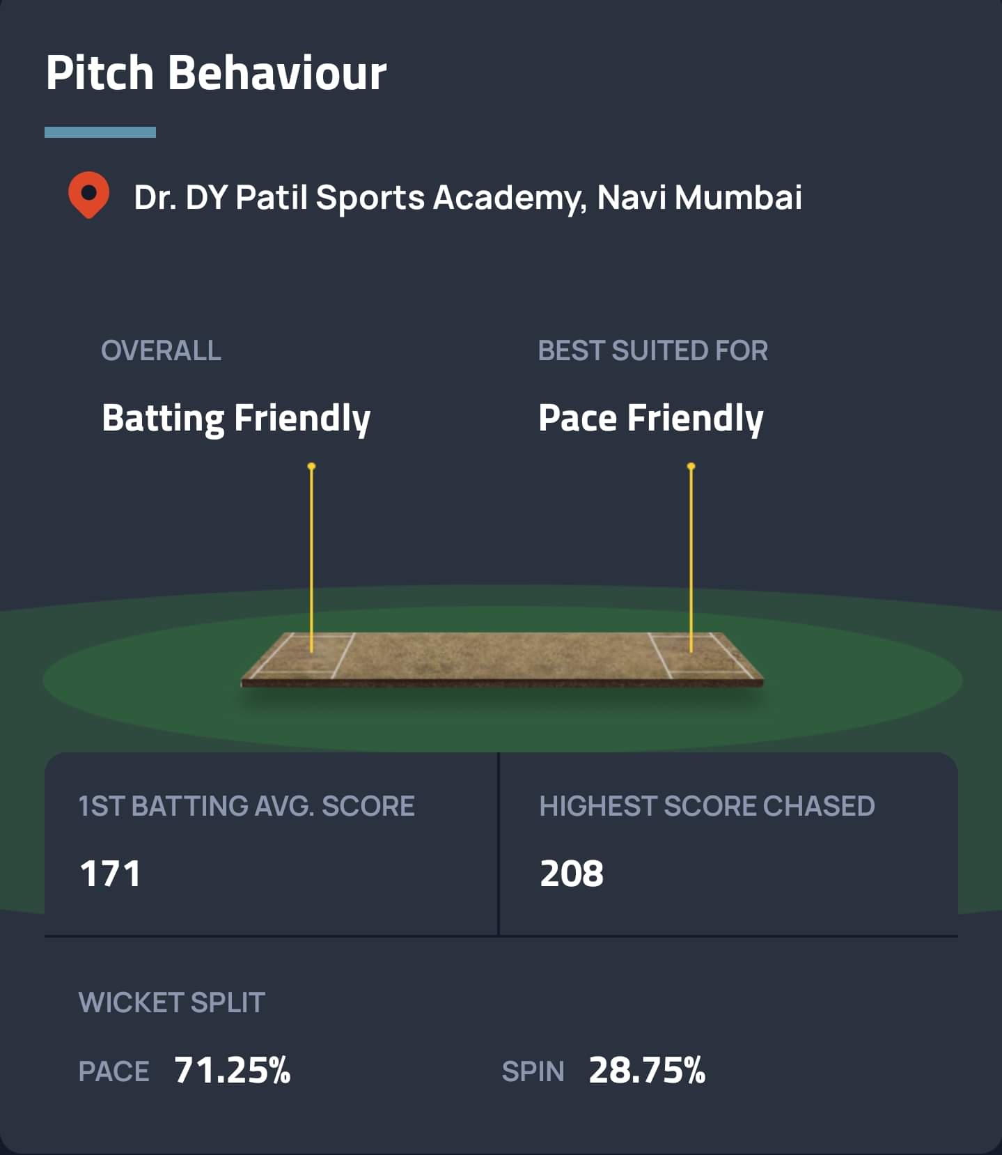 At the start of the tournament, the DY Patil Stadium was a good venue for the batters, with 200 always on the cards. But in the recent time, it has turned into a slow and mucky affair, visible from how the games have panned out. In the last five clashes, in only one encounter has the team gone past the 150-run mark.
