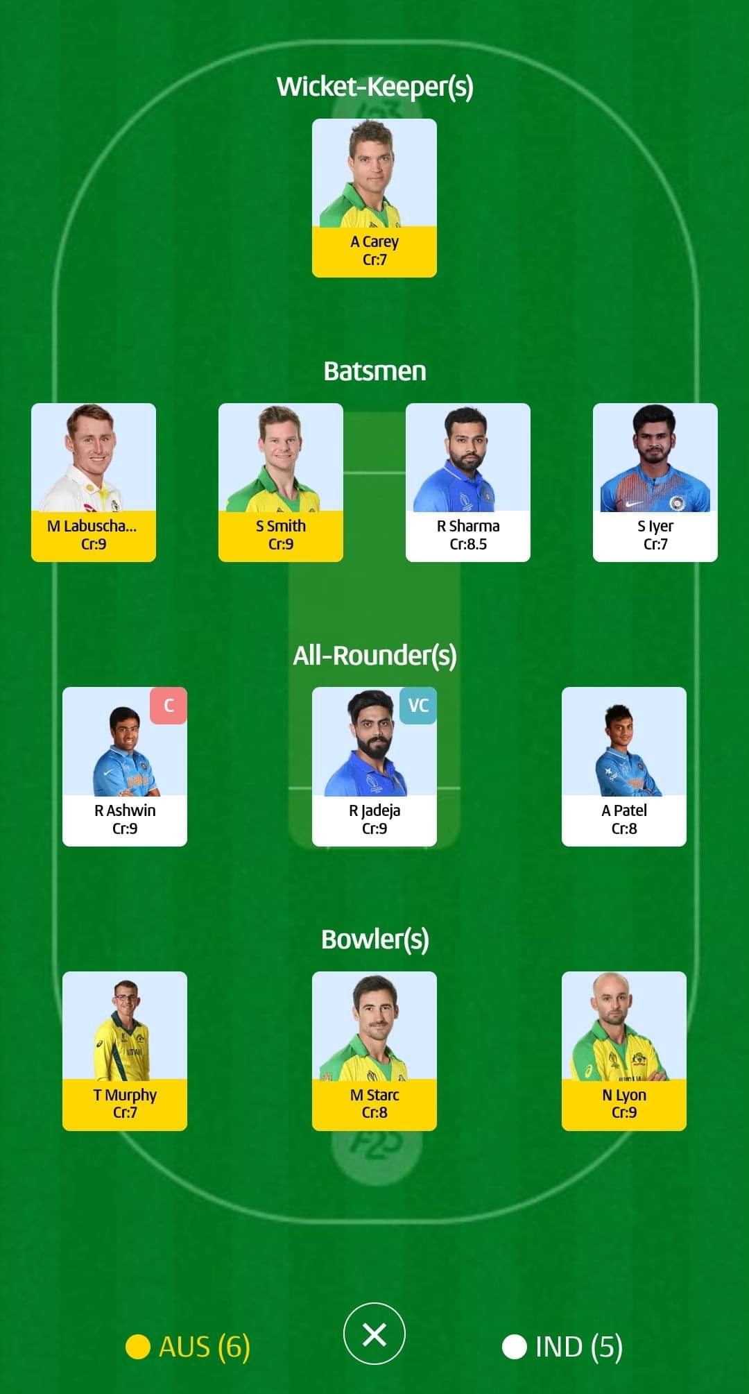 For small leagues: Ravichandran Ashwin ( c ), Ravindra Jadeja (vc)
