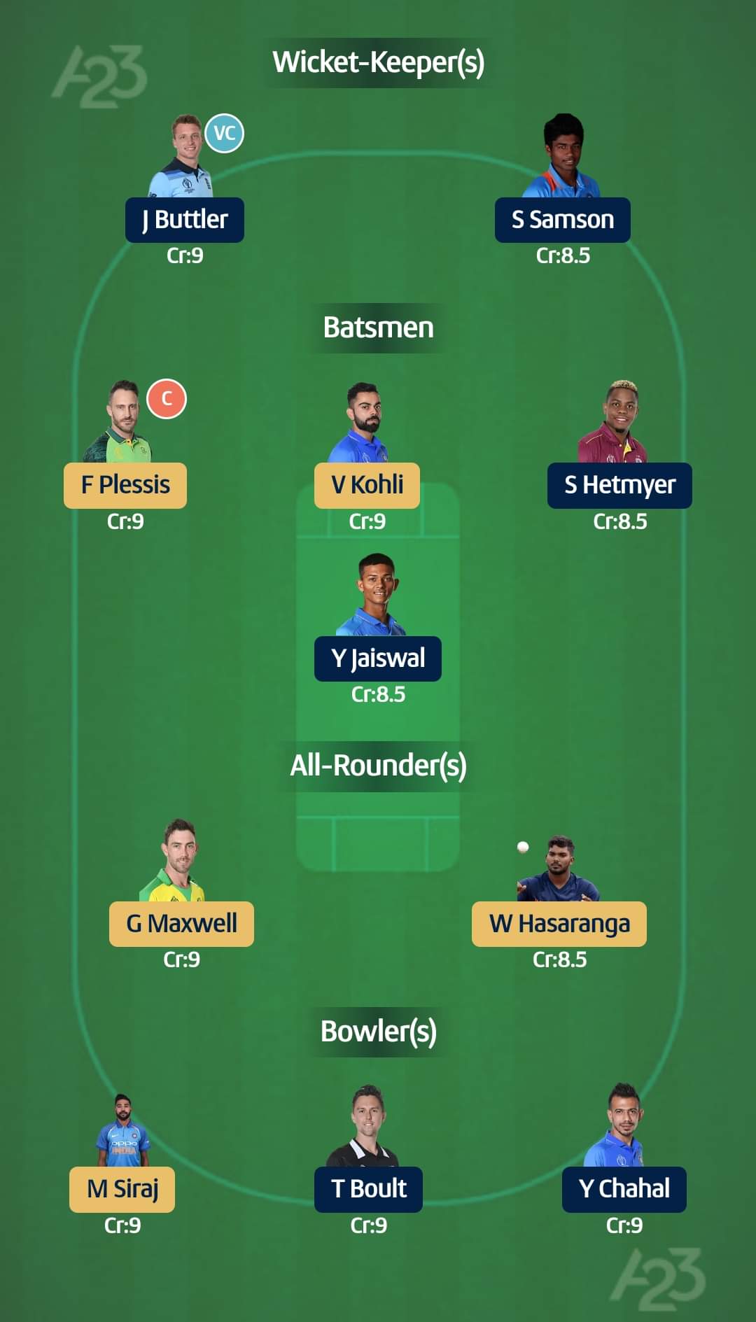 For Small League: Faf du Plessis (Captain), Jos Buttler (Vice-Captain)