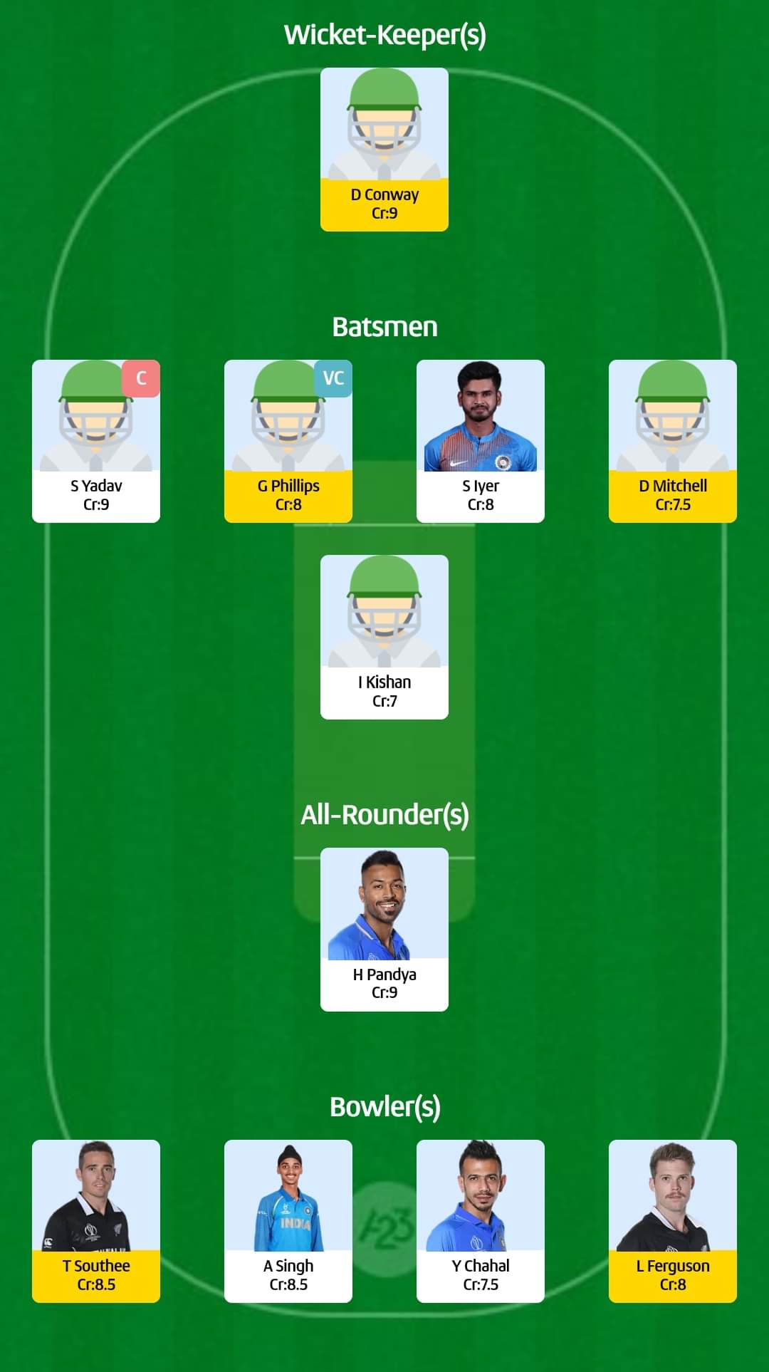 For small leagues: Suryakumar Yadav (Captain), Tim Southee (vice-captain)