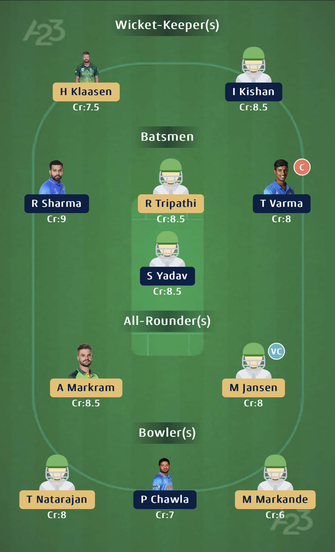Small Leagues: Tilak Varma (C), Marco Jansen (VC)