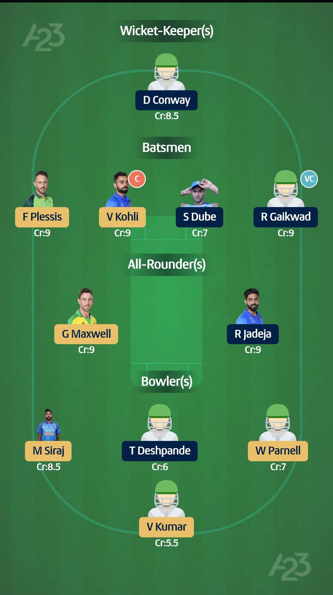 For grand league: Glenn Maxwell (capt), Tushar Deshpande (vice-capt)