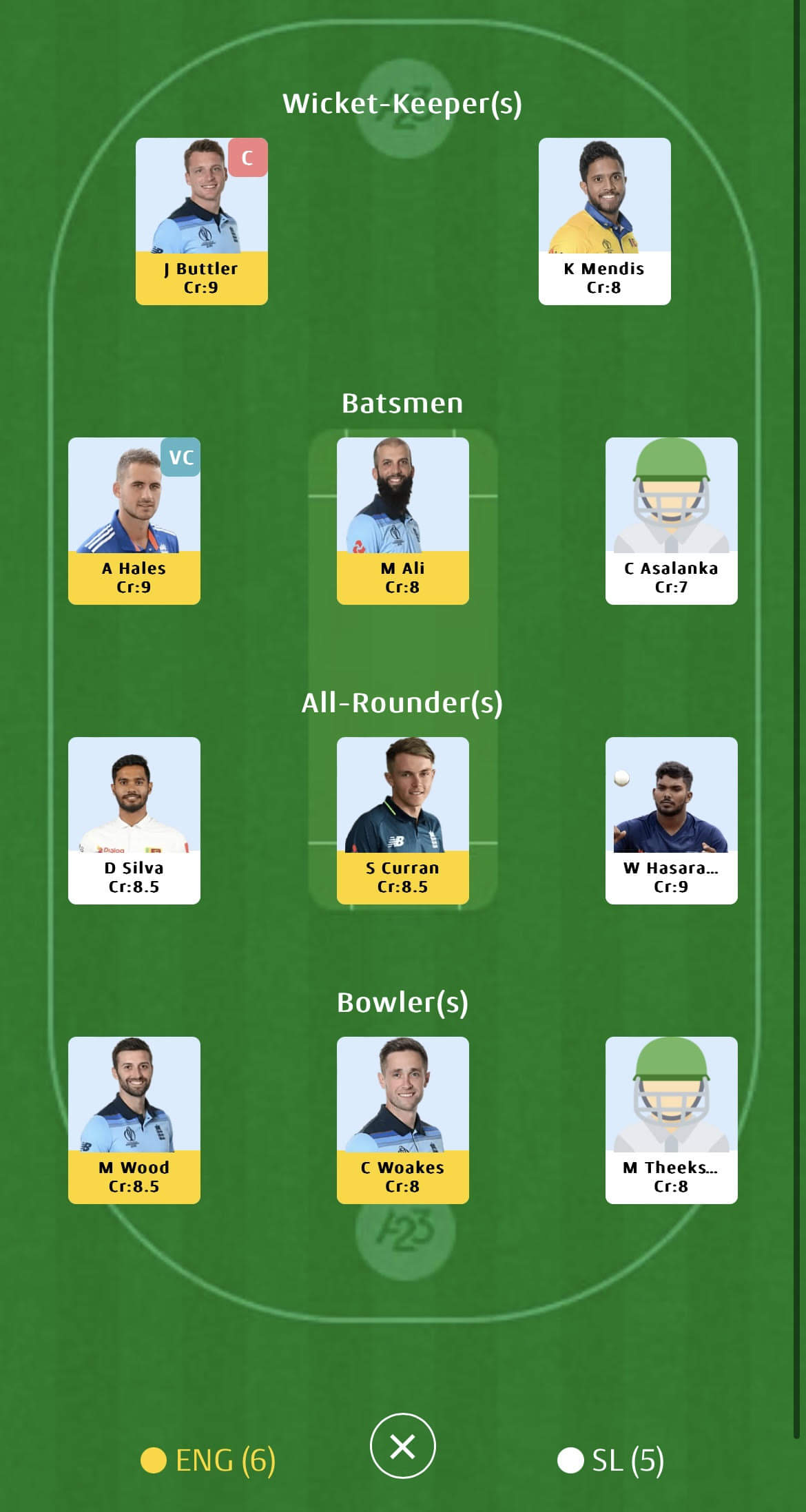 For grand leagues: Dhananjaya de Silva (Captain), Alex Hales (vice-captain)
