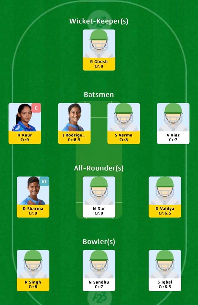 For small leagues: Harmanpreet Kaur (Captain), Deepti Sharma (vice-captain)