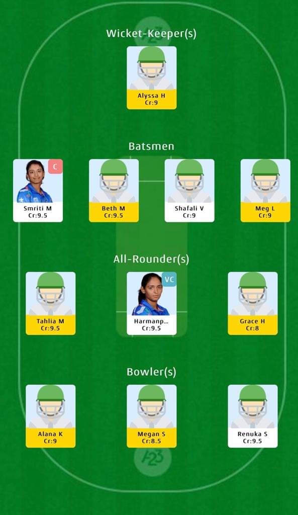 For grand leagues: Alyssa Healy (Captain), Harmanpreet Kaur (vice-captain)
