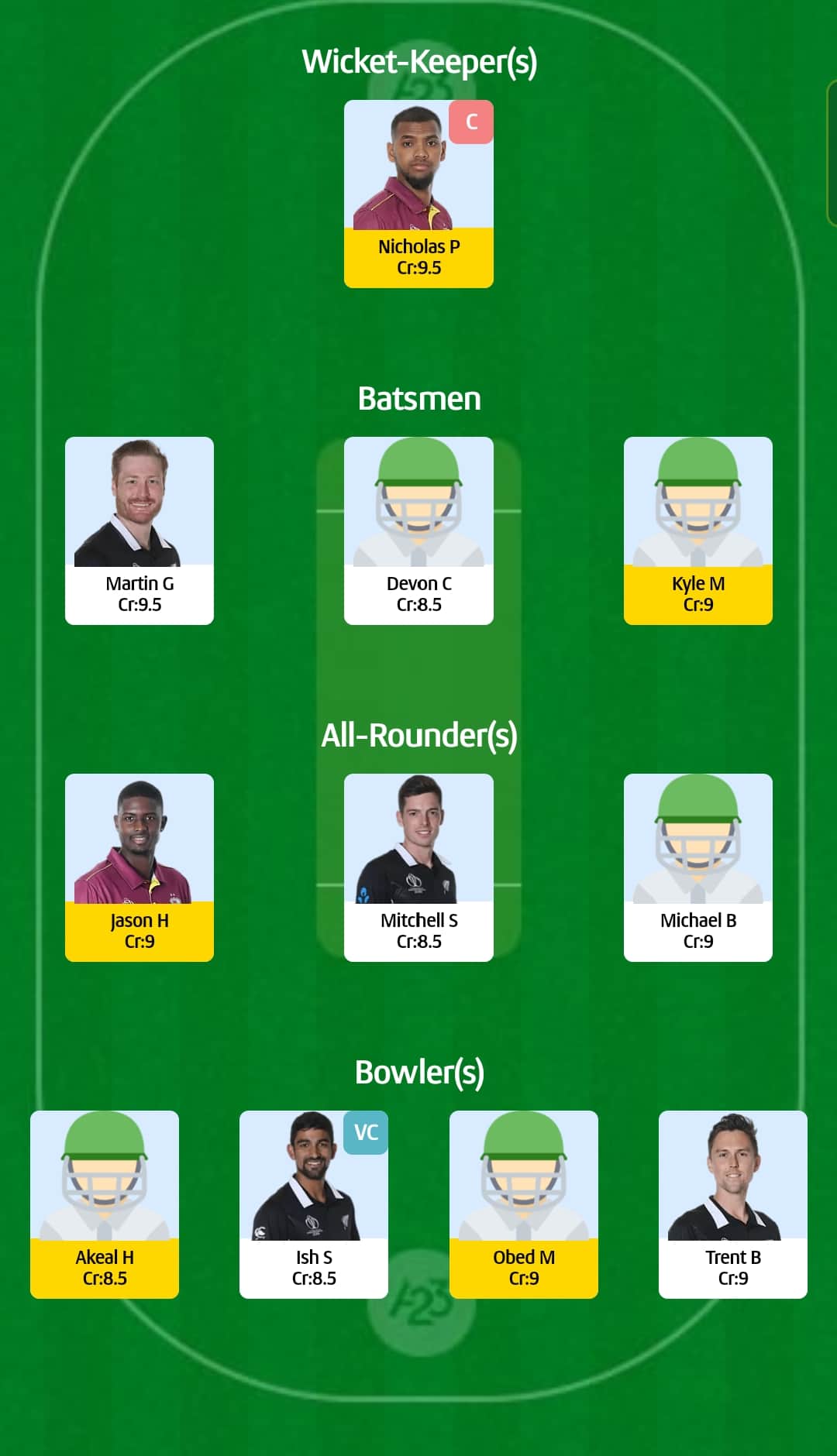 For small leagues: Nicholas Pooran (c), Ish Sodhi (vc)