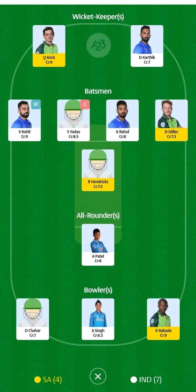 For Small Leagues : Suryakumar Yadav (Captain), KL Rahul (Vice-Captain)