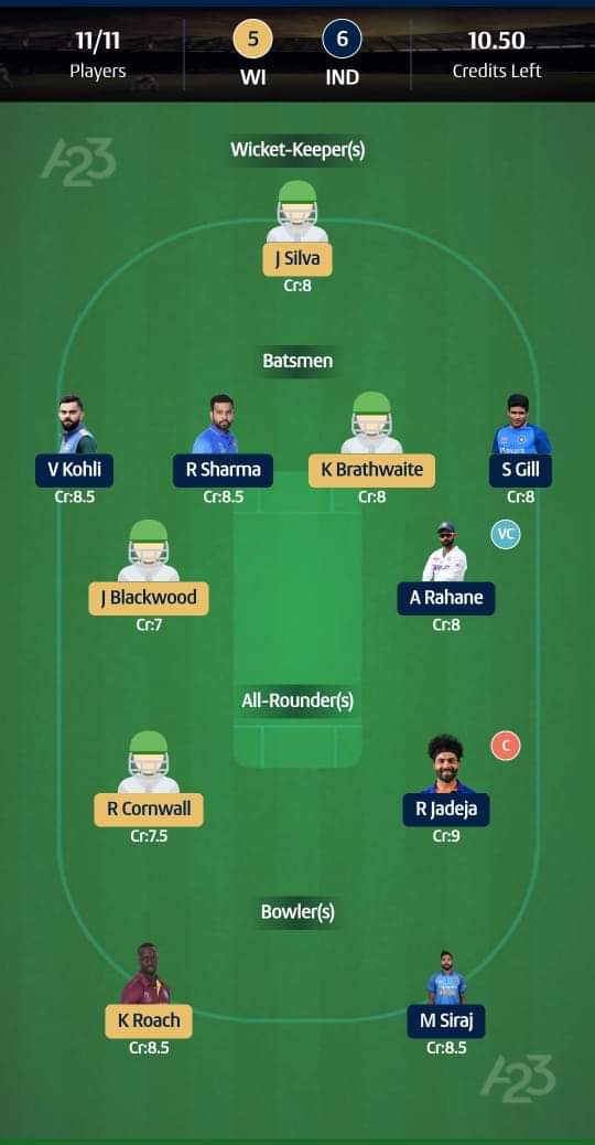 For small leagues: Ajinkya Rahane (c), Kraigg Brathwaite (vc)