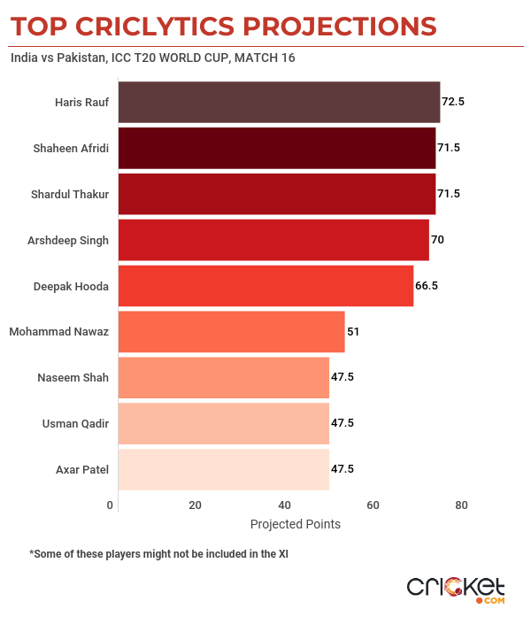 - Two of the leading run-scorers in the shortest format this year are playing this encounter – Mohammad Rizwan and Suryakumar Yadav. Rizwan has scored 821 runs this year, averaging 54.73 while Suryakumar has scored 801 runs with a strike-rate of 184.6, with six half-centuries.