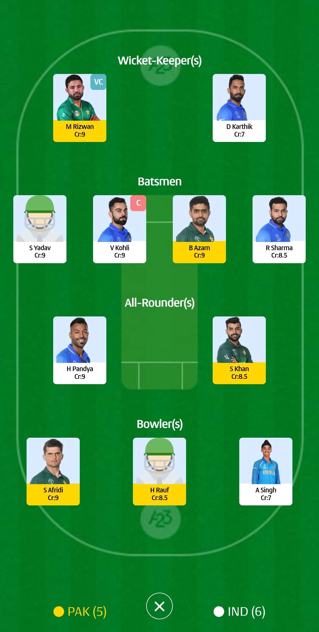 For Grand leagues: Haris Rauf (c), Hardik Pandya (vc)