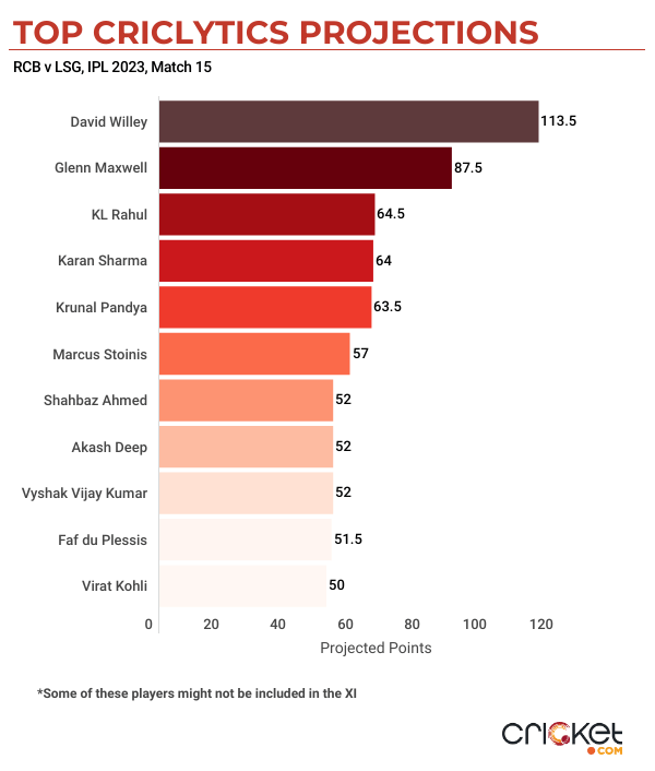 > There is a good chance that Quinton de Kock will feature in the Lucknow XI for this game. The left-hander averages 46.3 in the M Chinnaswamy Stadium at a strike-rate of 147.4 with three fifties and one hundred in 11 innings.