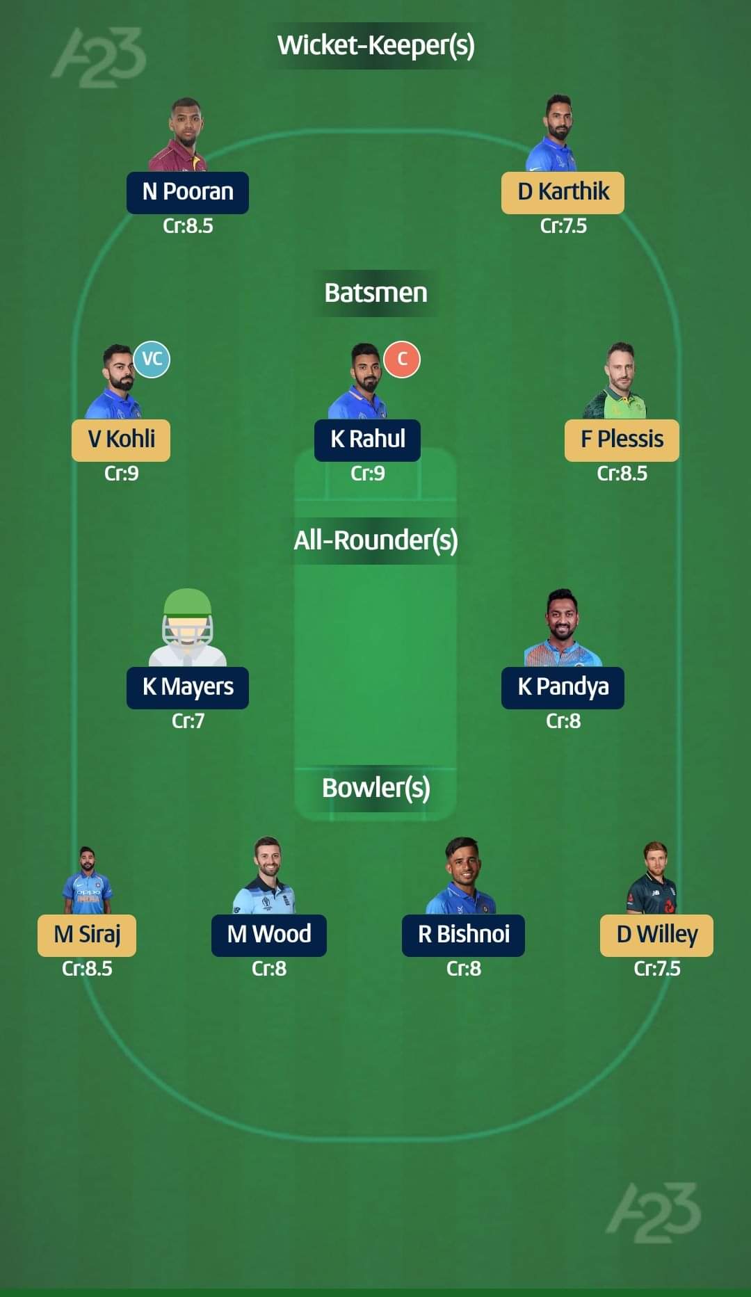 For small leagues: KL Rahul (capt), Virat Kohli (vice-capt)