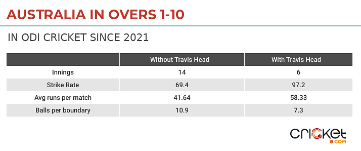 The table below highlights just how much of a difference Head’s presence has made. Put simply, Australia have been a different side altogether whenever he has opened the batting.