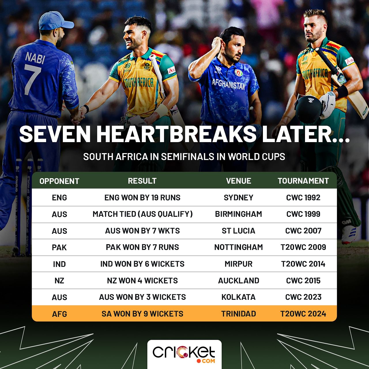 And they did just that, courtesy Tabraiz Shamsi, who picked three wickets in 11 balls as Afghanistan got bowled out for 56, the lowest-ever total in a knockout game in World Cup history.