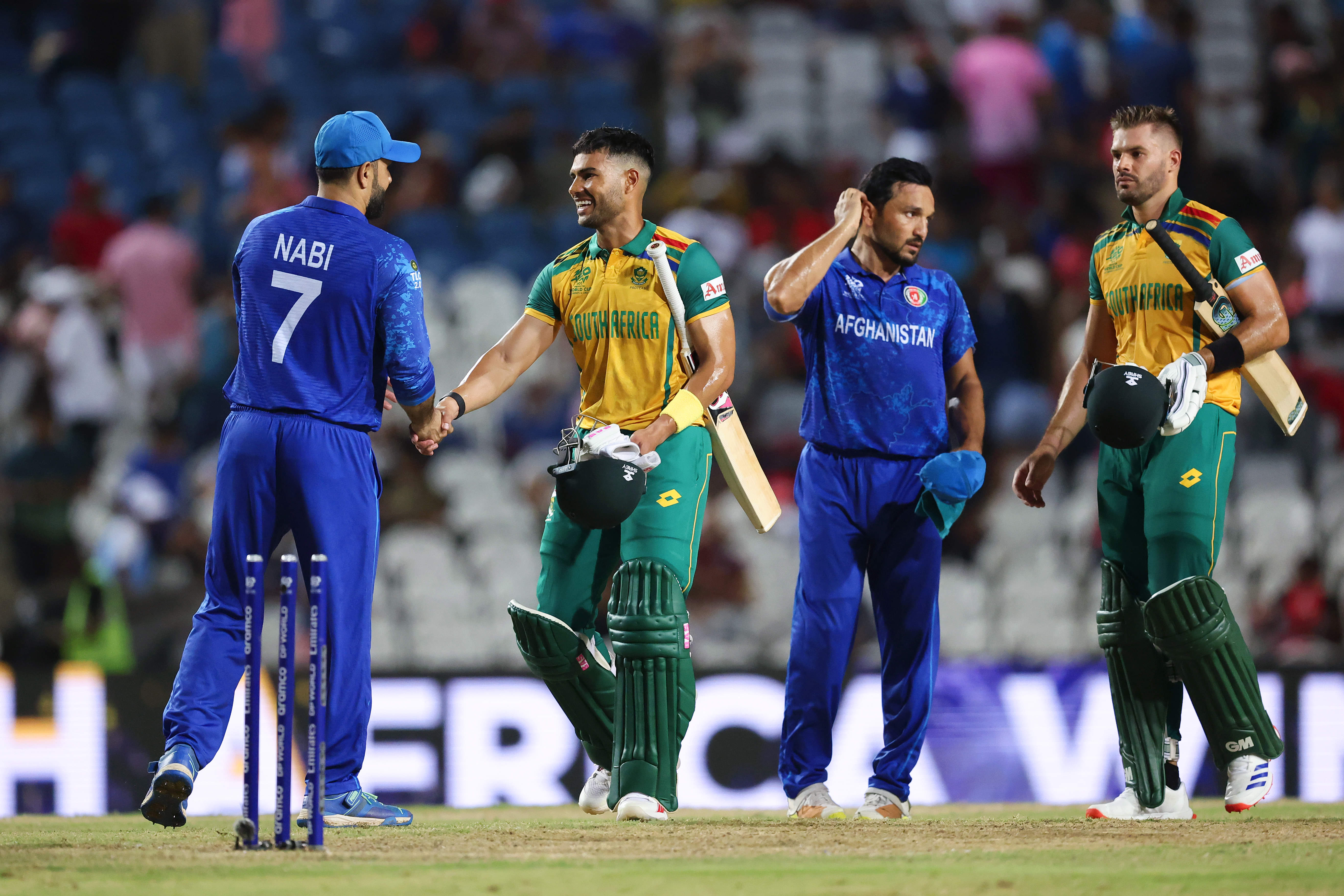 Rabada’s first over in this game was his best in this T20WC, yet, with the right-armer dismissing both Ibrahim Zadran and Mohammad Nabi with unplayable peaches that castled the stumps. The 29-year-old found extravagant seam movement that simply proved too good for both Zadran and Nabi.