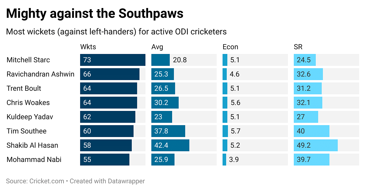 - David Warner hasn’t faced a lot of Ashwin in ODI cricket (15 runs off 19 balls), and that’s perhaps a big shock. But across other formats, the off-spinner has a wood over the left-hander. Ashwin has dismissed Warner the joint-most times (5) in T20s, with Warner having a strike-rate of 123 against him. Marsh, too, has been dismissed once by Ashwin, which could make a prime option to bowl with the new ball.