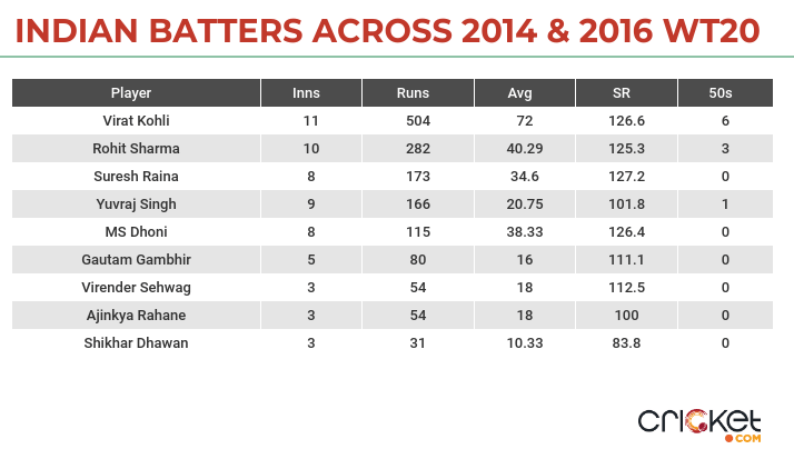 Kohli was 23 when he featured in his first T20 World Cup, back in 2012. In his maiden campaign, he would go on to do exceptionally well: 185 runs at an average of 46.25, amassing 75 more than any other Indian player and collecting two Player of the Match awards. Including one against arch-rivals Pakistan courtesy a ruthless, statement-filled 78*.