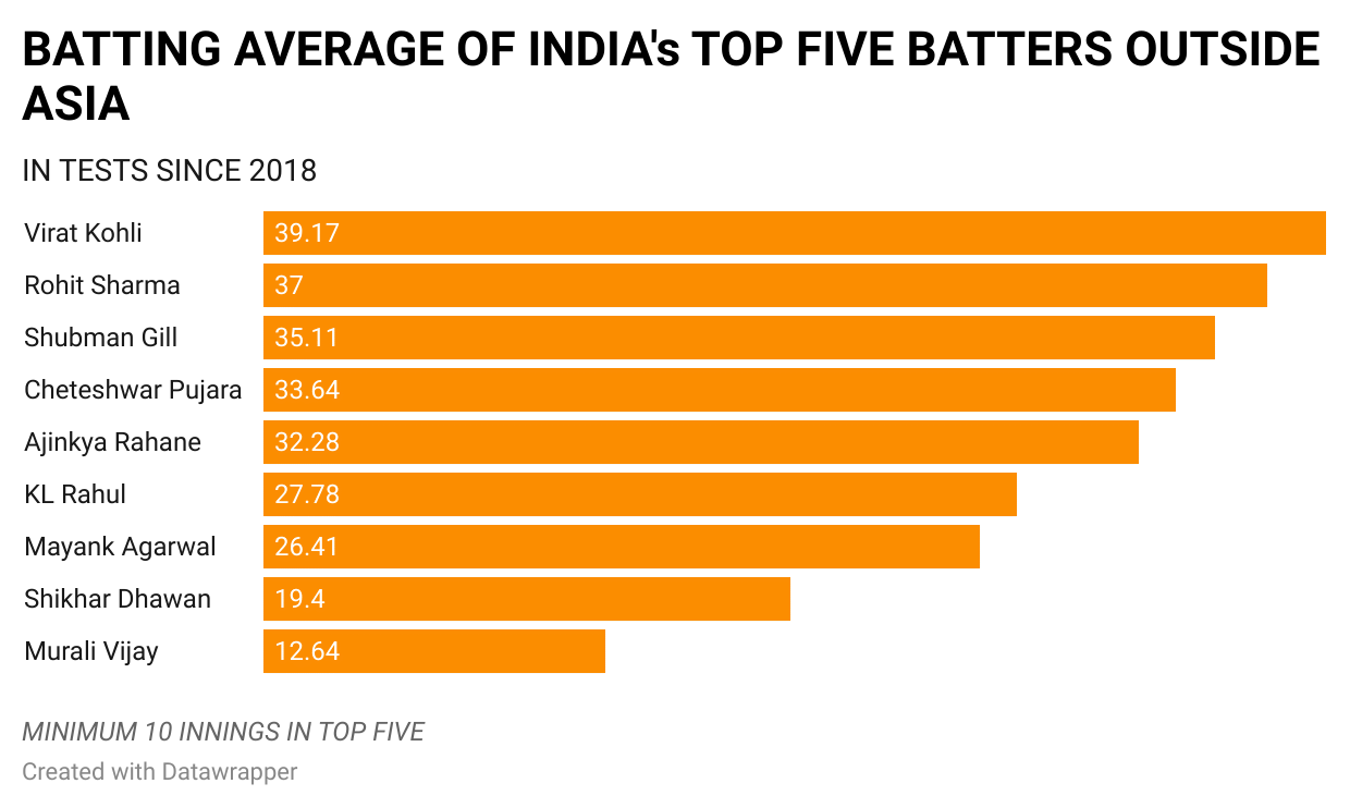 Jadeja’s necessity has risen due to the top-order turning fragile. India’s top order has middling numbers outside the subcontinent since 2018. No Indian batter who bats in the top five regularly has averaged above 40 in SENA countries (South Africa, England, New Zealand and Australia) along with West Indies.