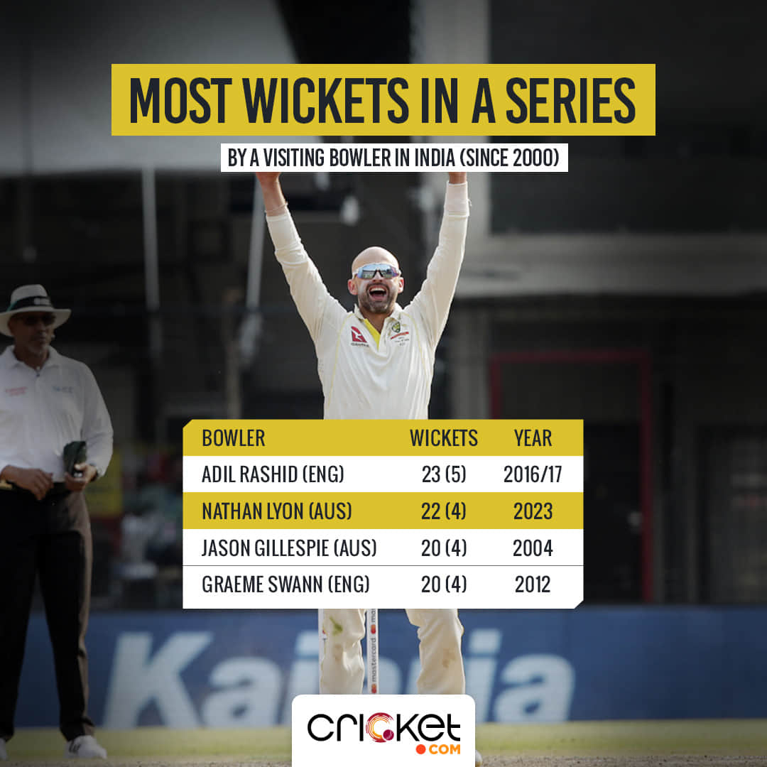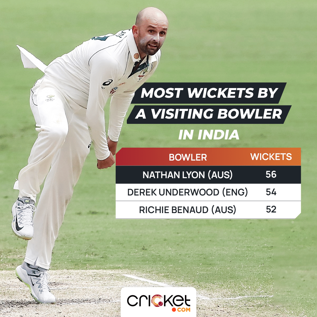 The greatest spinner to have ever played in India – Derek Underwood – had just 54 wickets, and Lyon went past him having bowled in ten fewer innings.
