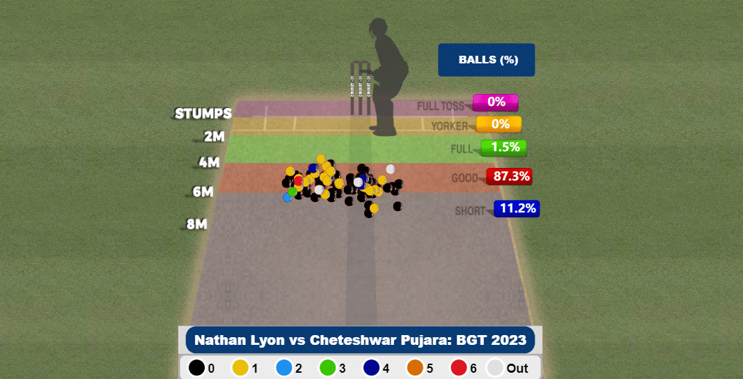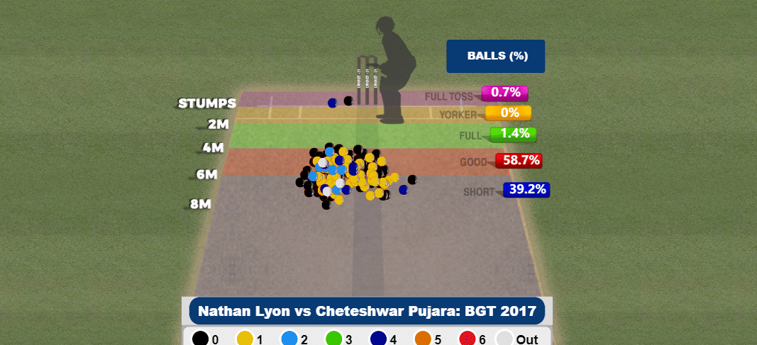 87.3% of the deliveries from Lyon to Pujara in the recently concluded series was in the good length region, whereas only 58.7% were bowled in that region in the previous tour. It doesn’t restrict to just Pujara but to beat the stubbornness of Pujara in such a manner, only few bowlers have done is quite breath-taking.