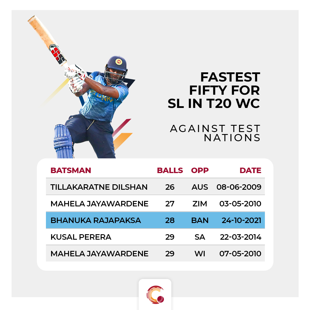 The birthday boy, Bhanuka Rajapaksa, targeted the shorter boundaries and smashed two huge sixes off the first two deliveries to put the bowler, Saifuddin, under tremendous pressure. The left-hander scored a destructive half-century (53 off 31) to help Sri Lanka inch closer to the win. Despite his wicket, Asalanka powered the team over the line with a scintillating 80 off 49 studded with five boundaries and five massive sixes. The five-wicket win, chasing 172 in the opening game of their Super 12s, helped them record their highest successful run chase of the T20 World Cup.