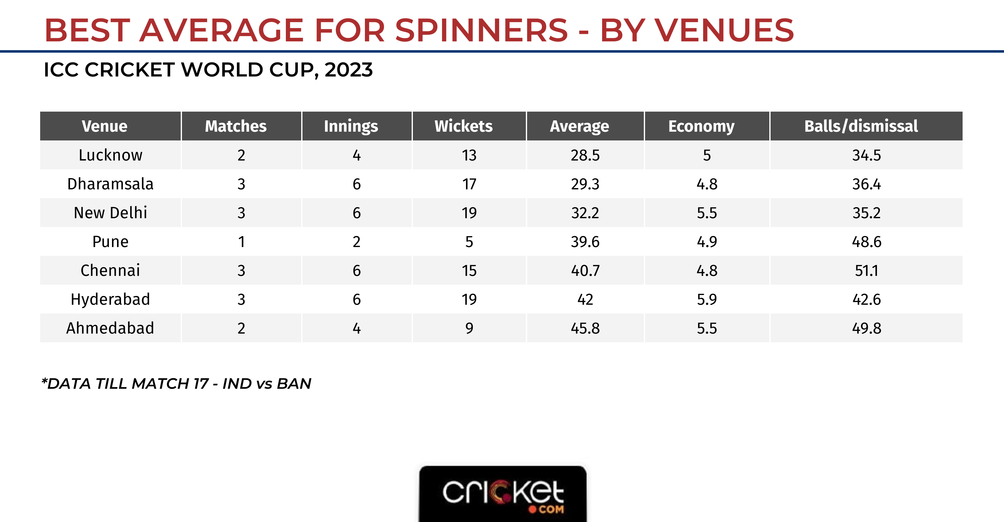 It is not just pace that has been booming in Dharamshala. In a venue with help for all kinds of bowlers; even spinners have had a say, averaging only second-best after Lucknow.