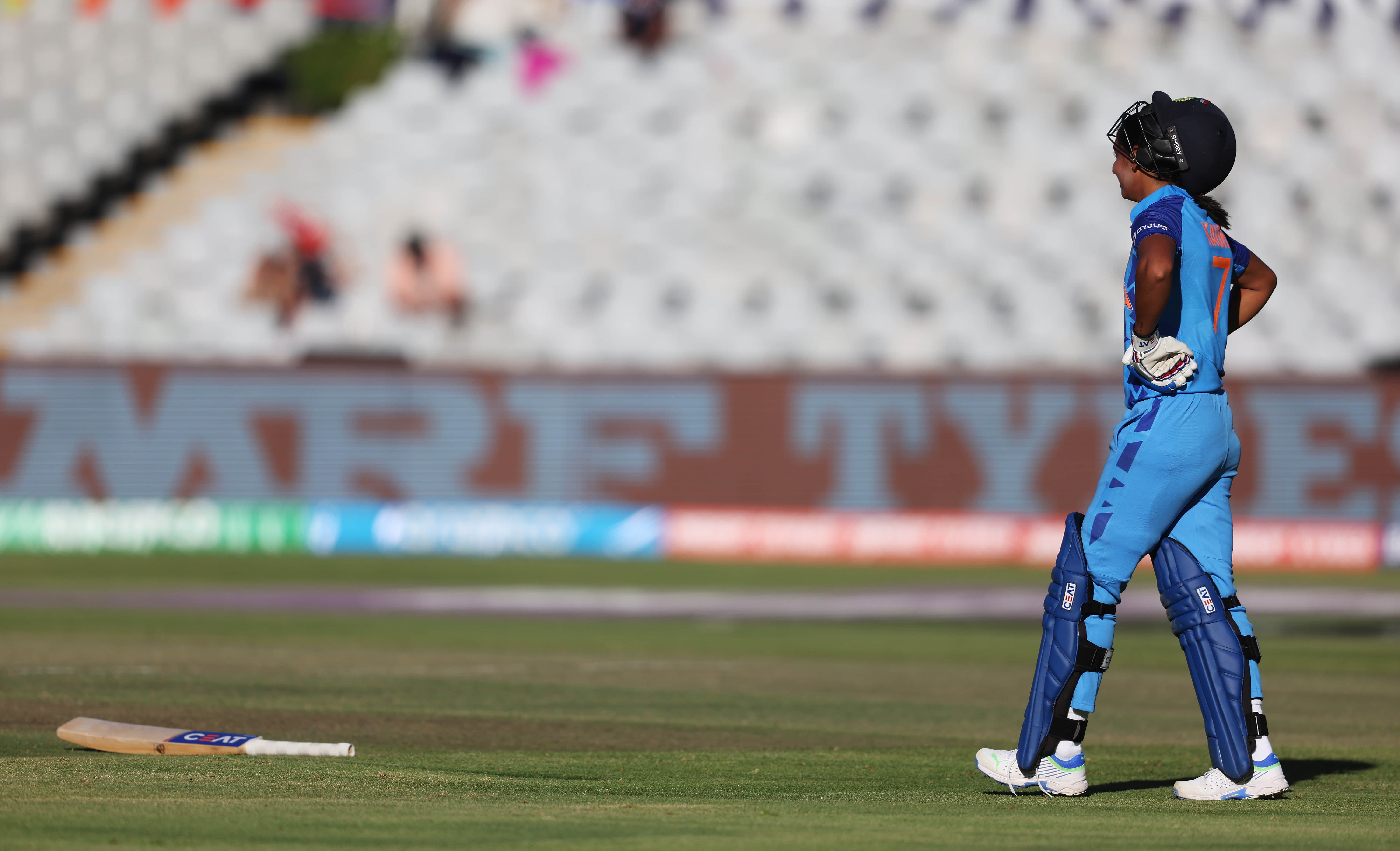 It would be harsh to blame the dismissal on Harman, but one that would have pinched her in the heart. The Indian skipper stood with her hands on her waist, ruing her bad luck, and threw the bat in anger while walking back, knowing the door was open for Australia to pounce on.