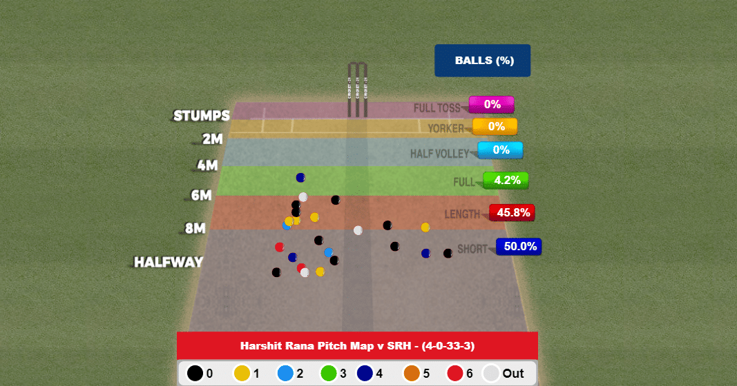 29.17% of his deliveries were slow, and the average pace was 113.1 KMPH, and that’s where two of his crucial wickets came, with an economy of 6.9. Those slower deliveries came as a big surprise for the Sunrisers, who were flying with seven needed off five.