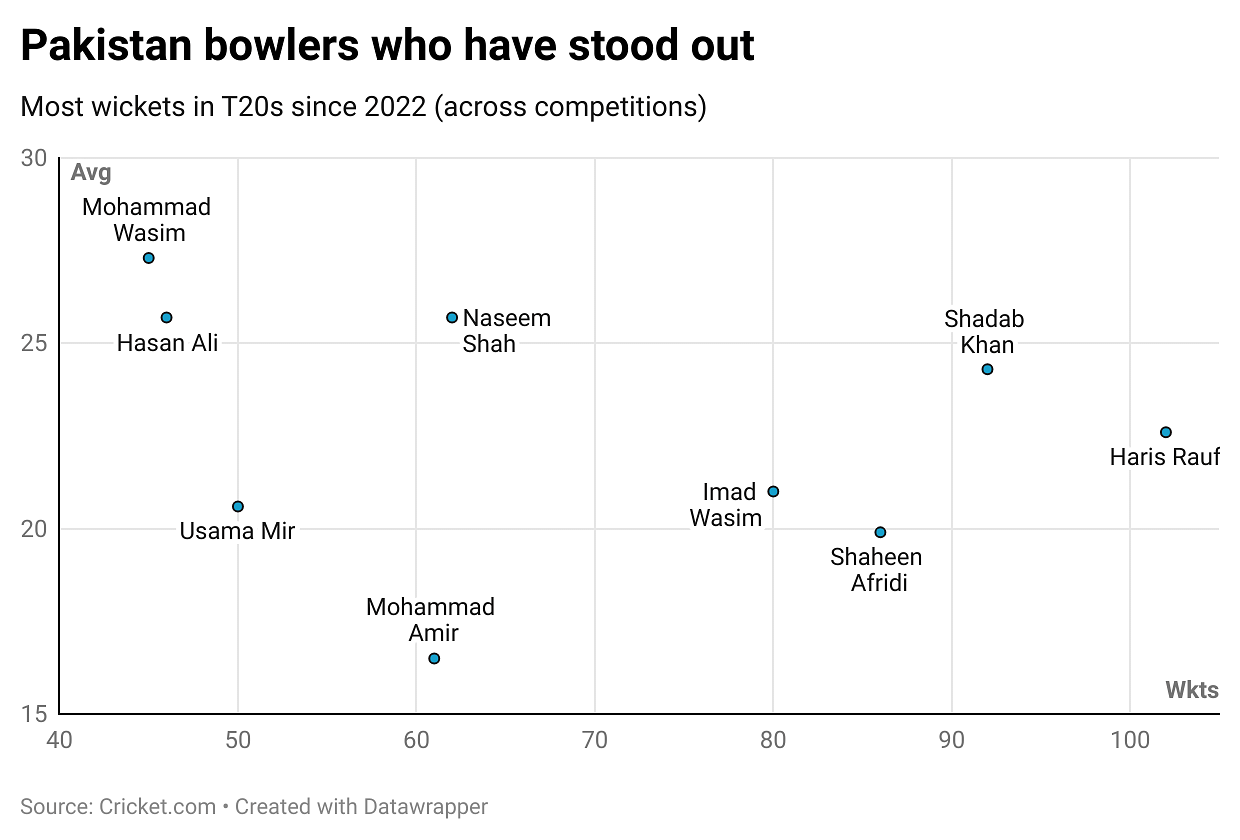 With Shaheen Afridi and Haris Rauf, Pakistan have some serious firepower. But then, with Faheem Ashraf, you have someone who has the ability to bowl across phases. Mohammad Wasim Jr’s experience at his death, too, will come of value.