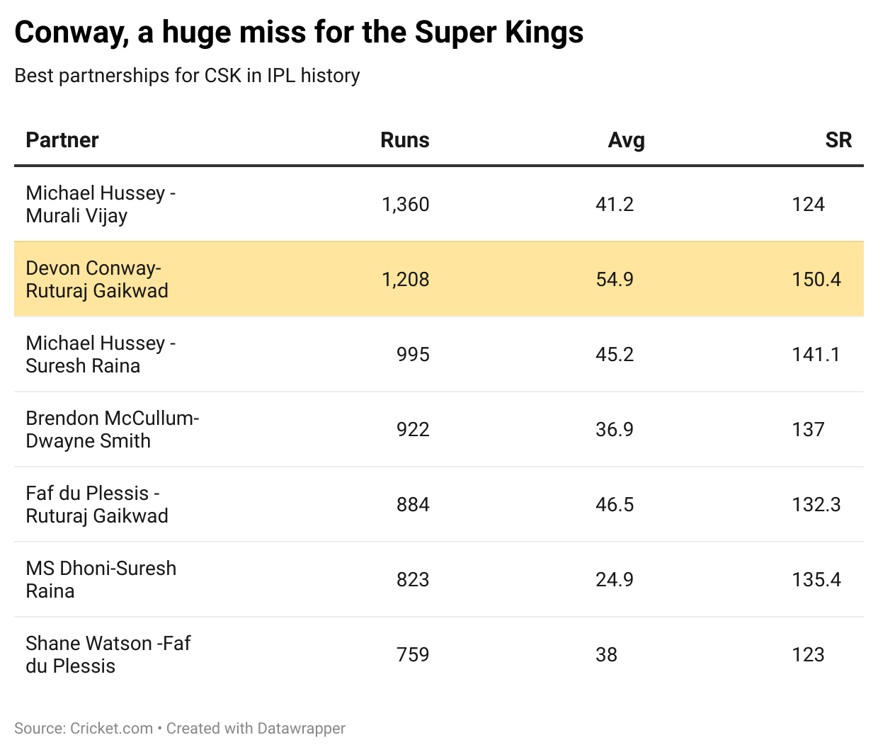 Breaking a pair of such prowess is always a tough task. It can break teams, but if one team can recover from such suffering, it is the Super Kings. So, how do they replace Conway at the top of the order?
