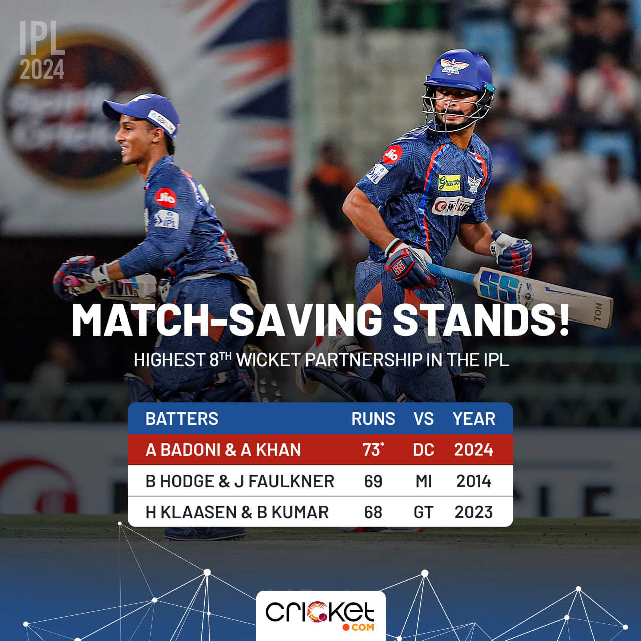 Ayush Badoni has coped with some criticism of late. He had only 29 runs in the last four games. Today (April 12), however, walking in to bat at 77/5, he carried the team to 167/7, scoring an unbeaten 55 off 35 balls. He found able support from Arshad Khan with whom Badoni forged a record stand.Â