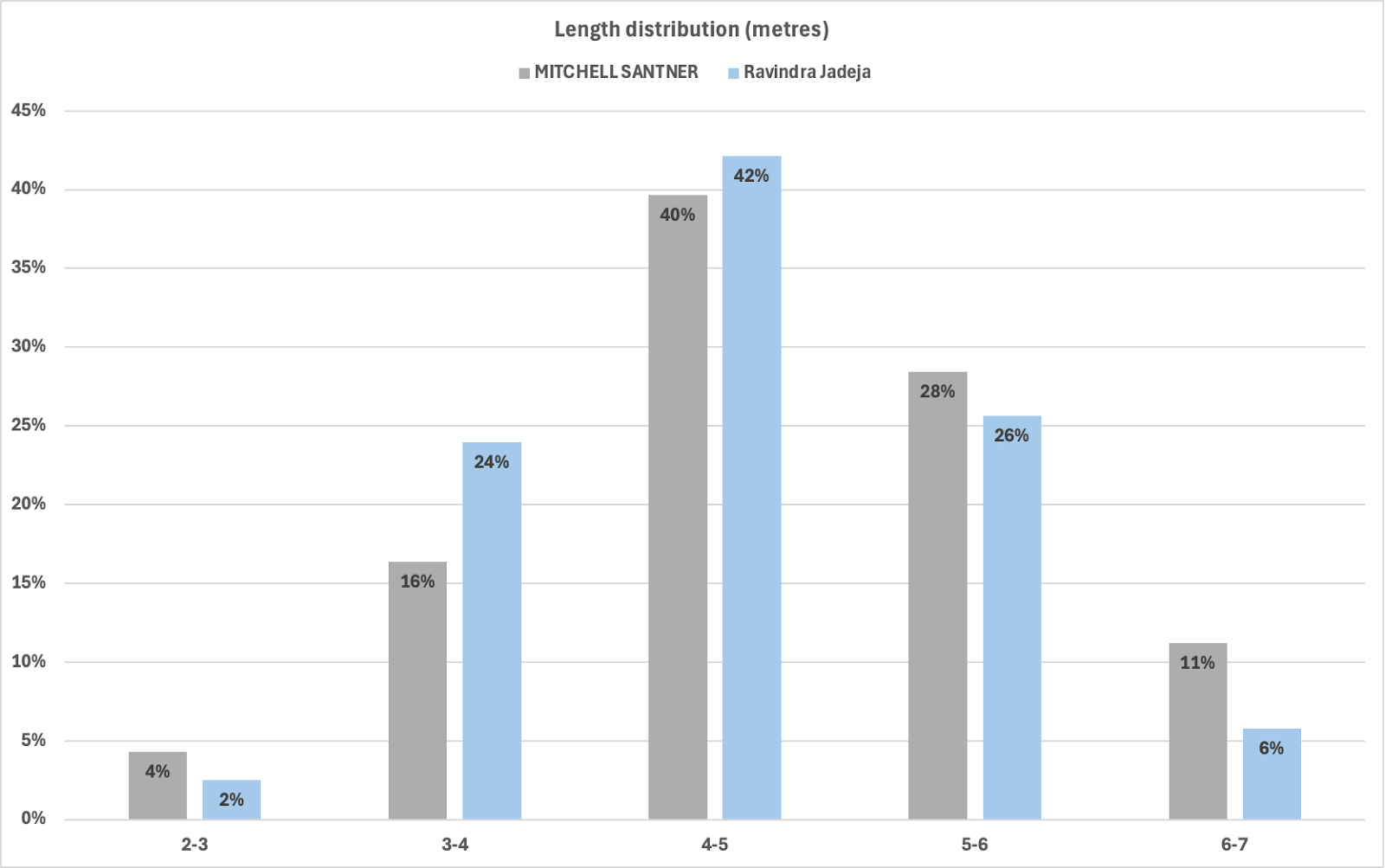 Let’s get the similarities out of the way first. Both the bowlers bowled almost similar lengths as is evident in the distribution below.