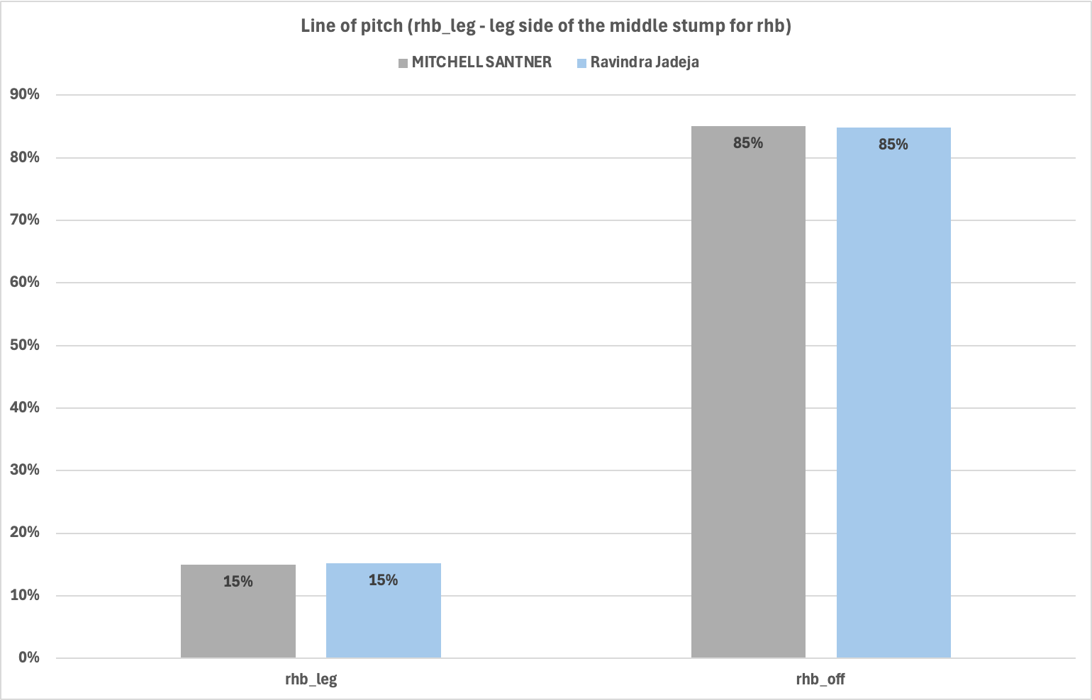 Now to the line. Broadly, there wasn’t much difference in the line as well. In the graphic below, 'Rhb_leg' refers to the balls that pitched on the leg side of the right-hand batter. Rhb_off refers to deliveries that pitched on the off side. Leg and off sides are measured from the middle stump.