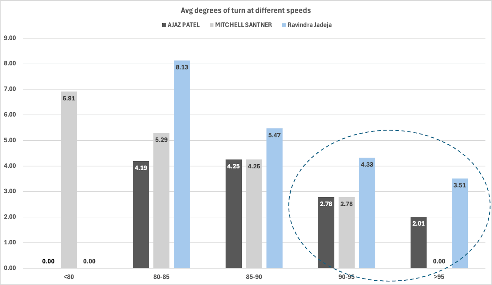 It is precisely this ability to turn the ball at high speed that makes Jadeja unique. It is much harder than it sounds. Look at the turn he got at different speeds in this match compared to the other two SLAs.