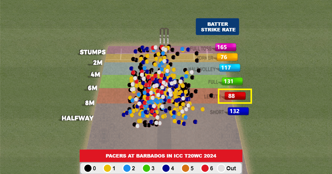 4. Batters have struggled to score when pacers have consistently bowled on the good length region.