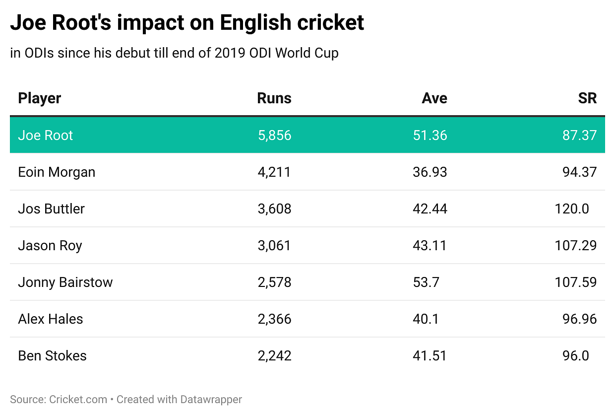 7, 3, 12, 0, 21, 3 and 2 were the scores back then. But over the years, Root had worked out his flaws, hustling day in and out. Eventually, that ability to manoeuvre the field in the middle overs became one of the hallmarks of his abilities in the 50-over format.