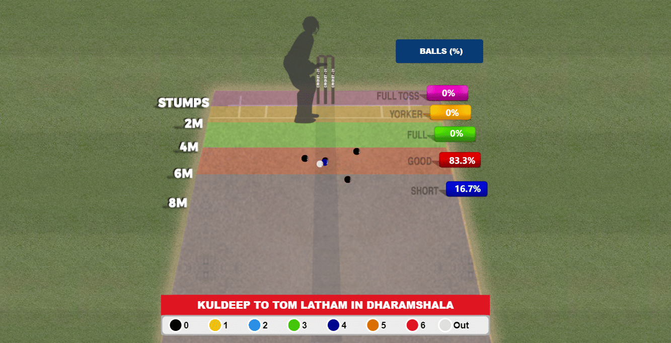 In the clash against India in Dharamshala, six balls of spin was all Latham faced (all against Kuldeep) and Kuldeep stuck to the above-mentioned gameplan, forcing Latham back before eventually trapping the left-hander LBW with a quicker one that slid past his bat.